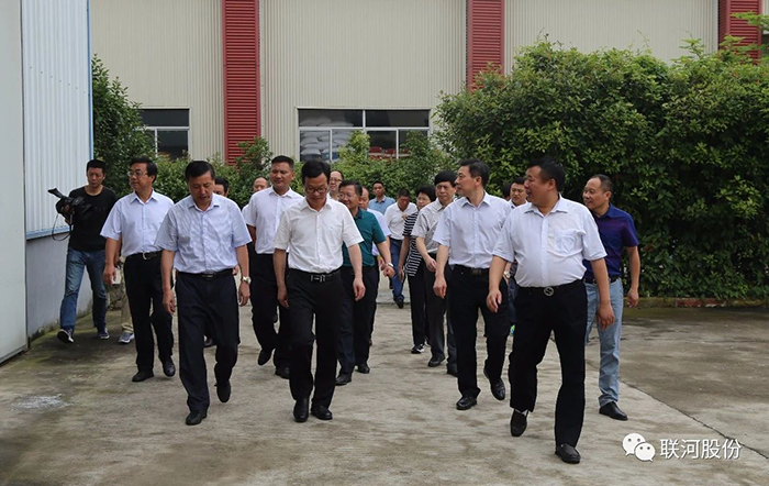 6月5日,太湖縣委書記程志翔率太湖縣黨政代表團一行60余人來聯河調研指導,縣領導李躍云、汪潔、錢和森、曹曉革、汪世平、公司董事長甘啟斌等陪同。