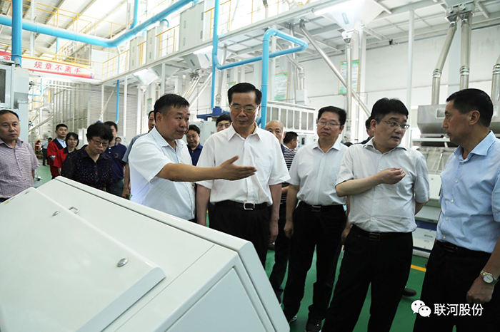 韓軍一行依次深入大米生產車間、精深加工車間,董事長甘啟斌詳細介紹了公司發展情況、發展目標、未來戰略規劃及助推精準扶貧工作方面的思路、模式、措施等。