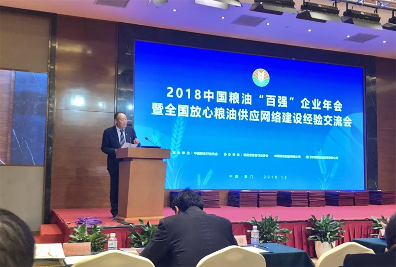 12月27日,由中國糧食行業協會主辦的2018中國糧油"百強"企業年會暨全國放心糧油供應網絡建設經驗交流會在福建省廈門召開,公司董事長甘啟斌應邀出席2018中國糧油”百強"企業年會并擁授牌似式。