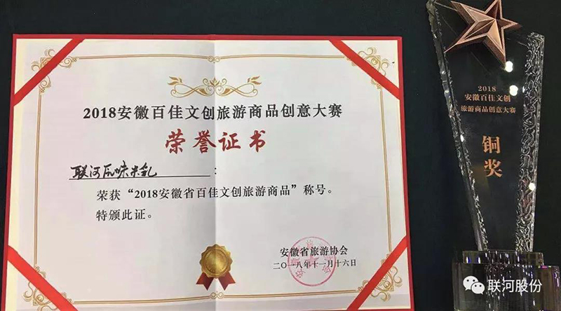 熱烈祝賀聯河米乳獲“安徽百佳文創旅游商品創意大賽”獎項