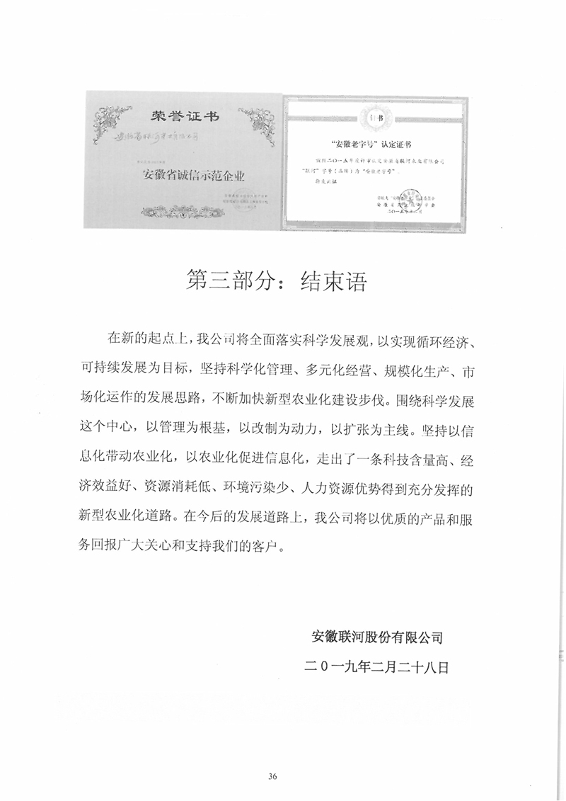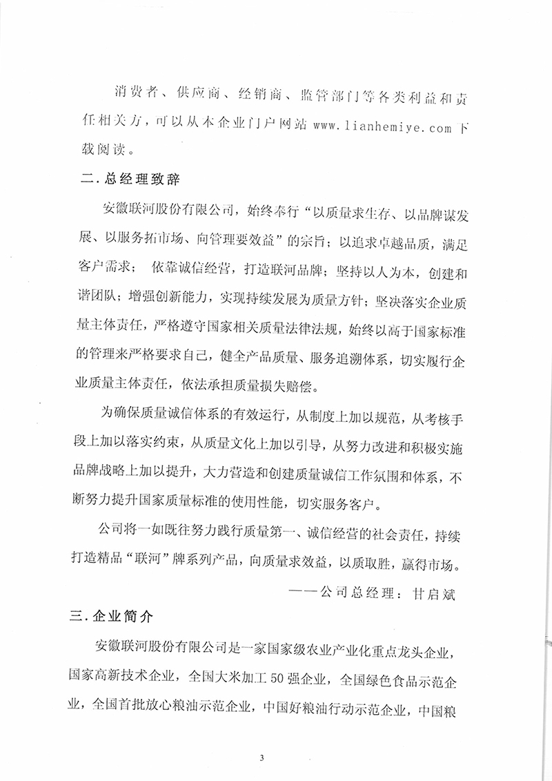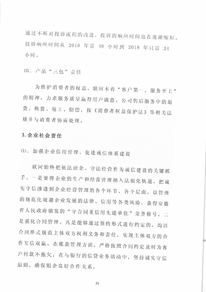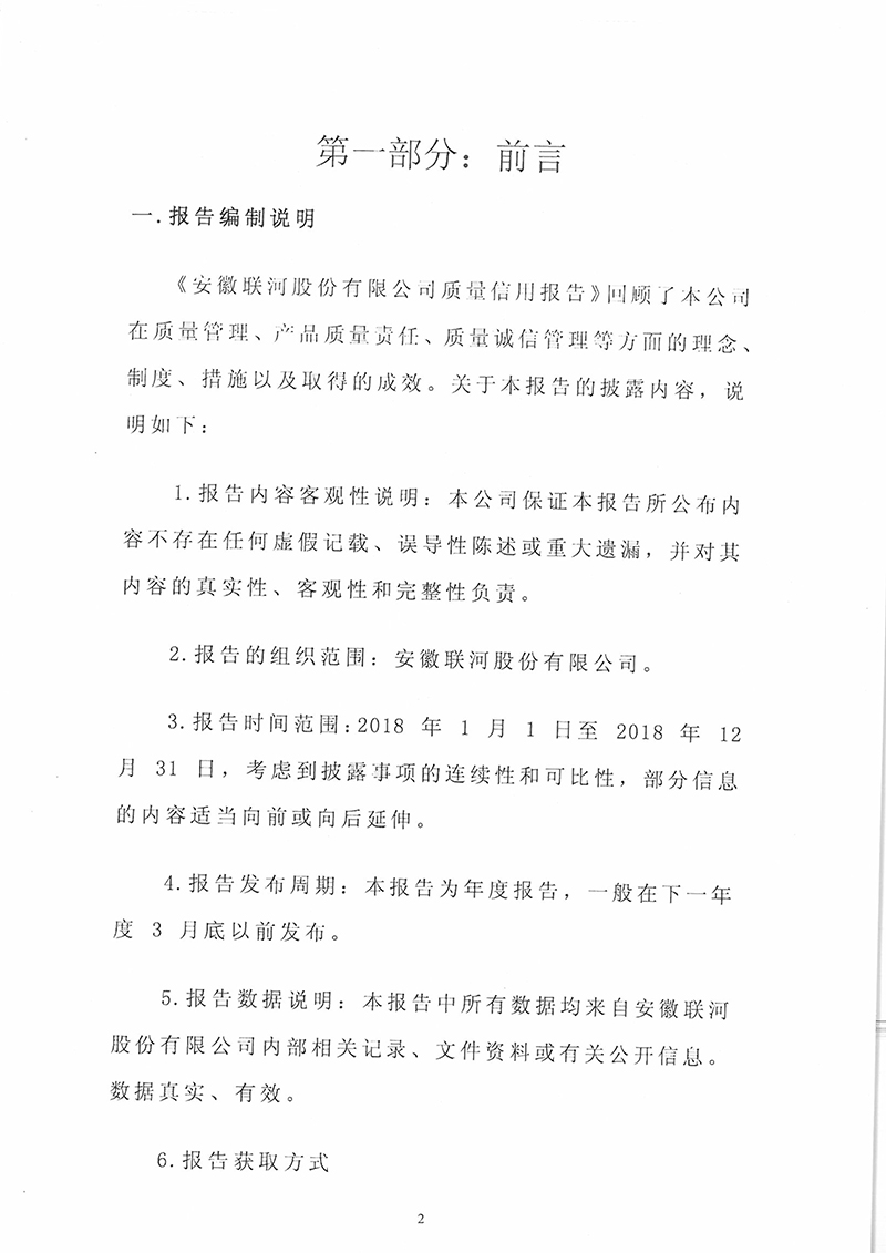 根據相關要求,現將安徽聯河股份有限公司2018年質量信用報告正式發布,敬請監督。