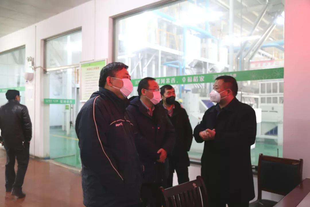 1月31日,國家糧食和物資儲備局安徽局一級巡視員汪光燦一行來公司督查指導應急加工、供應情況,省糧食和物資儲備局安全倉儲與科技處處長姚東春、糧食儲備處二級調研員薛蛟,市糧食局副局長陳鵬,縣發改委主任余代毛,公司董事長甘啟斌陪同。