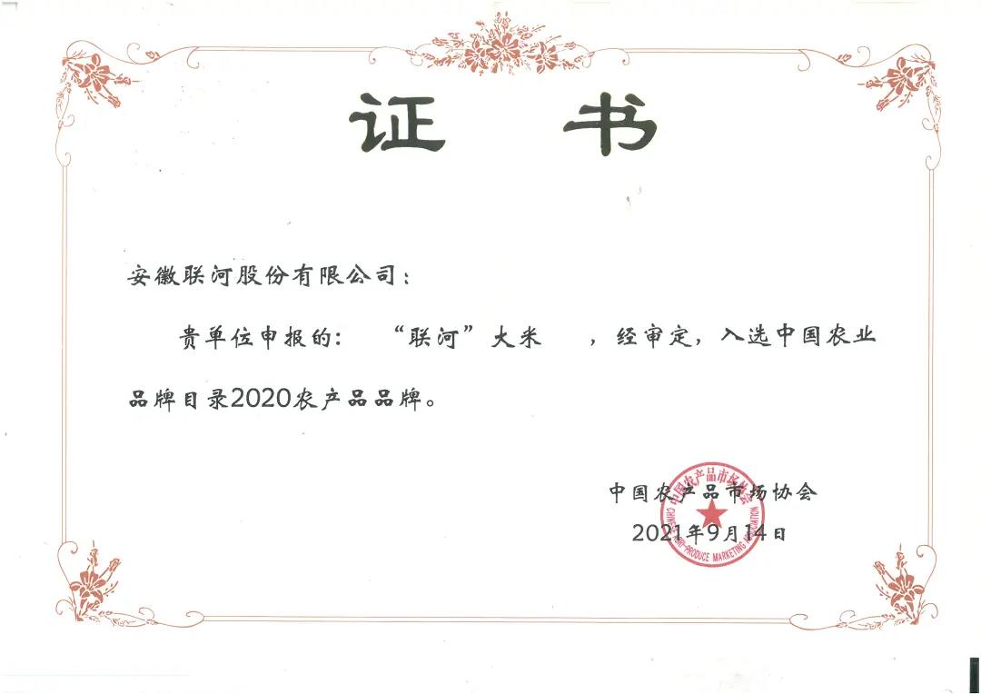 熱烈祝賀"聯河"大米入選中國農業品牌目錄2020農產品品牌