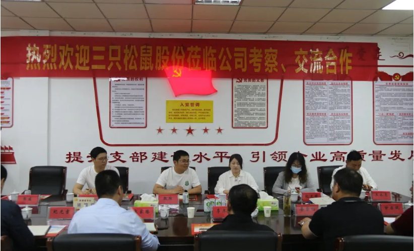 5月13日,三只松鼠股份有限公司法務、品牌公關總監殷翔一行蒞臨公司考察、交流指導,縣委副書記、代縣長李木林,縣委常委、開發區黨工委書記、管委會主任宋家臻、副縣長廖榮剛、縣商務局局長紀光吉、公司董事長甘啟斌等參加座談。